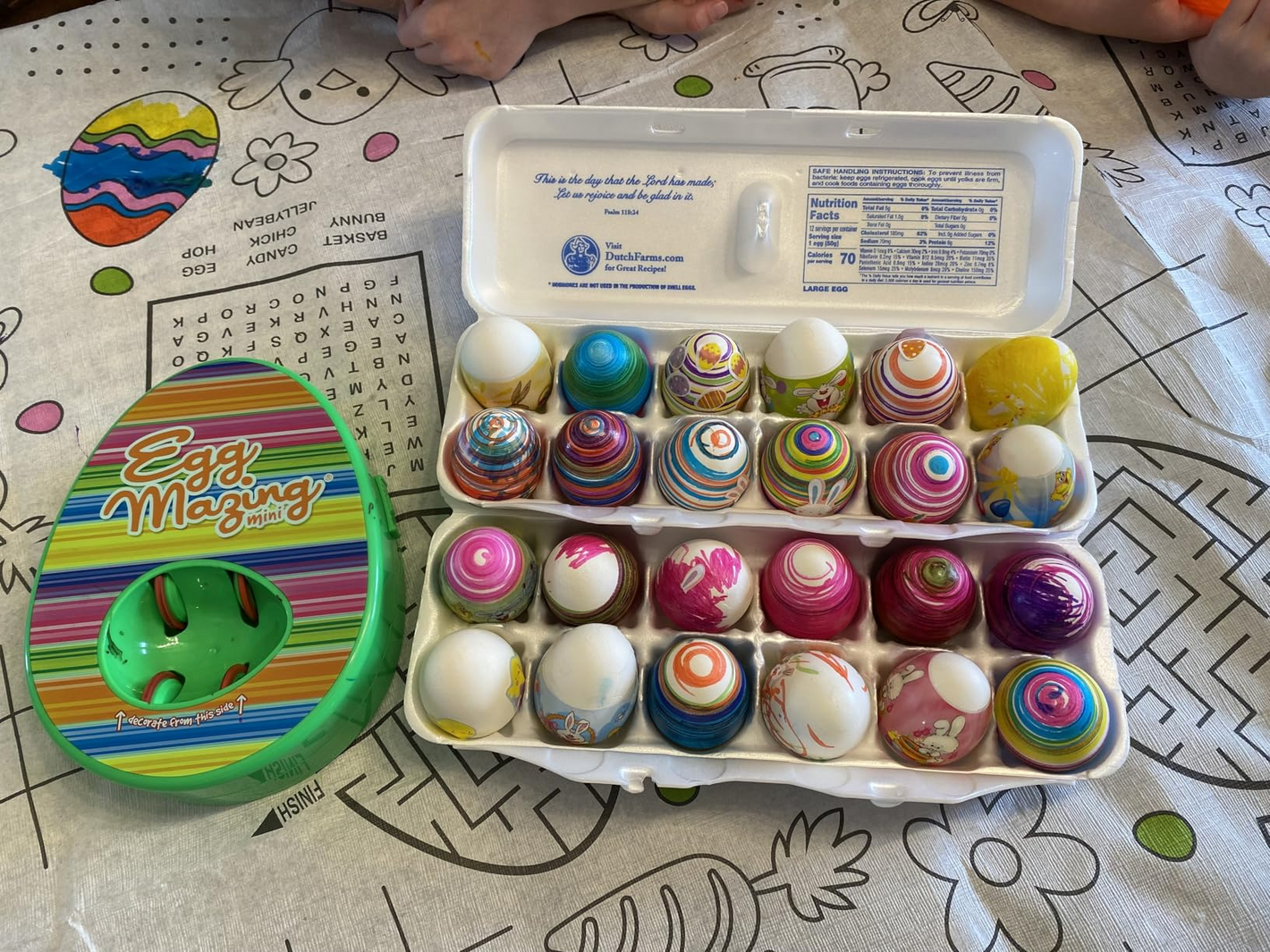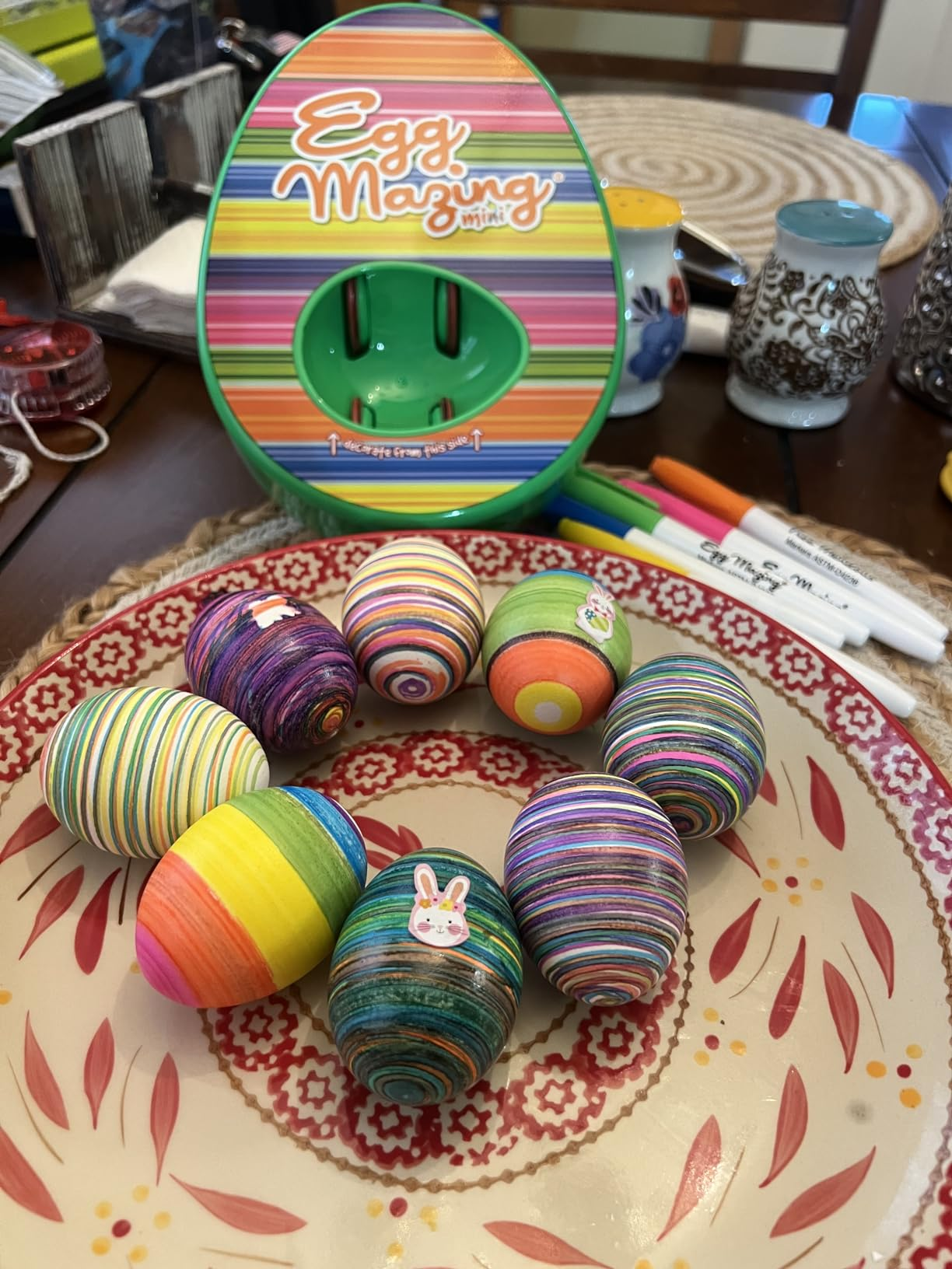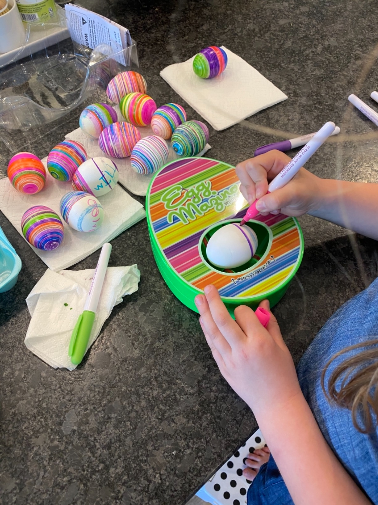• This is genius! I’ve seen these a few times in the years past but never bought one. I have grandkids and decorating eggs with this is so much nicer than using dye. No mess and they turned out beautiful! I will never go back to dying eggs. The kids had fun and even the 2yr old was able to participate.