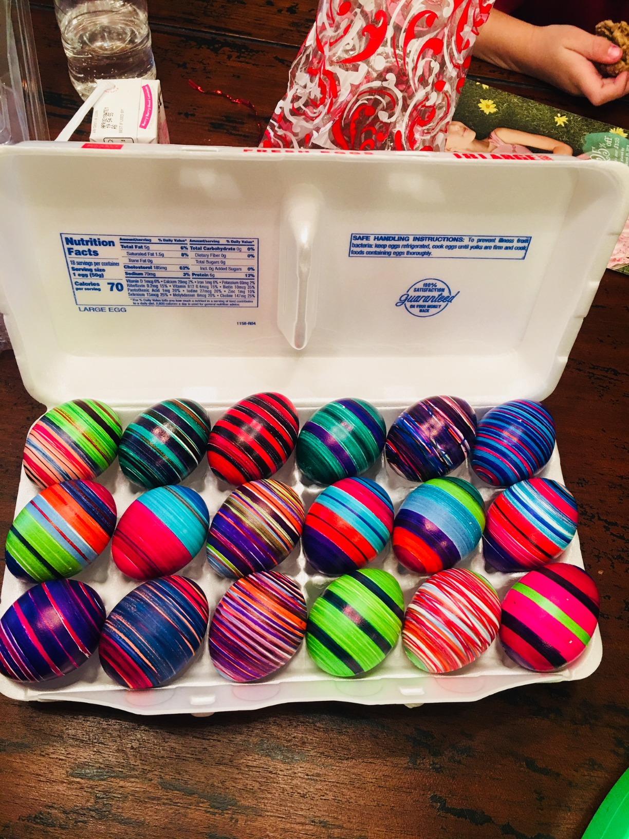 Way more engaging than just dipping eggs. The kids love choosing colors.